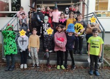Als Erstes sind alle in die Klasse gekommen. Viele hatten gruselige Kostüme an. Wir haben es uns sehr gemütlich gemacht. Dann hat uns Frau Spisak aus einem Buch vorgelesen. Schließlich haben wir eine Mumie aus Toilettenrollen gebastelt. Zwischendurch konnten wir etwas essen. Es gab sehr viele Snacks. Dann haben wir unsere selbstgeschriebenen Geschichten vorgelesen. Leider mussten wir dann schon gehen.