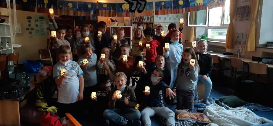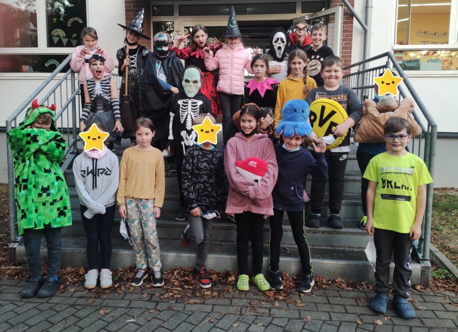 Unsere Klasse 4b hat es sich es als Erstes gemütlich gemacht. Dann gab es eine kleine Geschichte von Frau van Elsbergen. Als Nächstes wurden wir in Gruppen eingeteilt, um uns vor unseren selbst geschriebenen Geschichten zu gruseln. Eine Lesespur durfte auch nicht fehlen! Ein paar Geister Chips haben uns auch besucht. Eiskalt war es, als wir nach draußen zum Haus gegangen sind. Dort war eine Truhe mit Geistern (Lutscher) drin. Dann sind wir in die Klasse gerannt, außer Frau van Elsbergen, in der Klasse haben wir aufgeräumt dann wurden wir abgeholt.