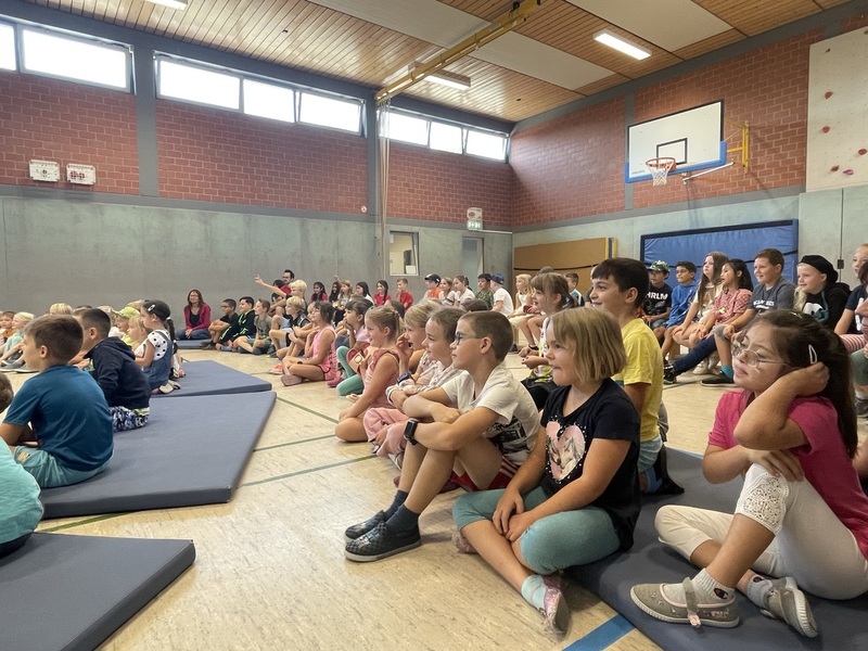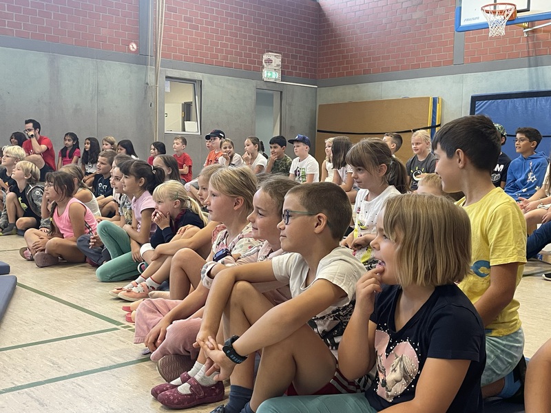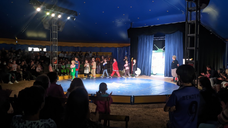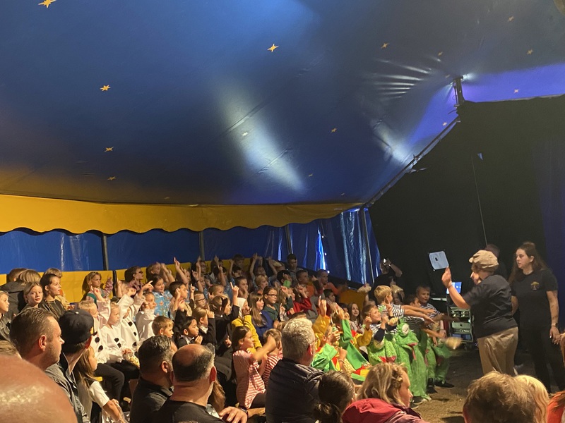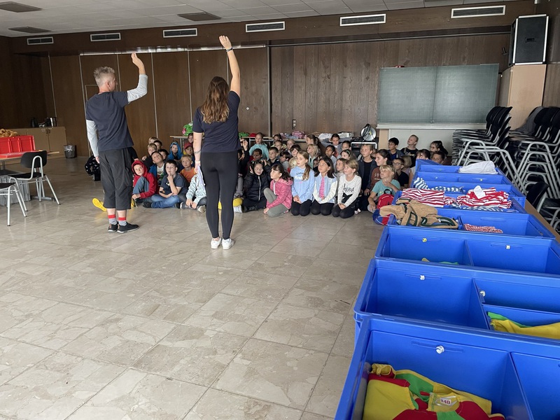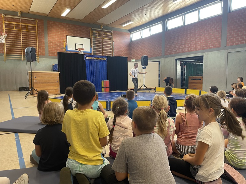 In der Woche vom 5. bis zum 9. September war der Circus Tausendtraum bei uns an der Schule. Wegen der Baustelle auf unserem Schulhof wurde das Zirkuszelt aber auf dem Friedensplatz aufgebaut. Jeden Tag haben wir trainiert und alle haben sich sehr angestrengt. Die Kinder sind Schritt für Schritt vorangekommen. Es war lustig, aber manchmal musste man sich an einigen Stellen echt konzentrieren. Unsere Trainer hießen Martin, Chris, Julie und Lucy.