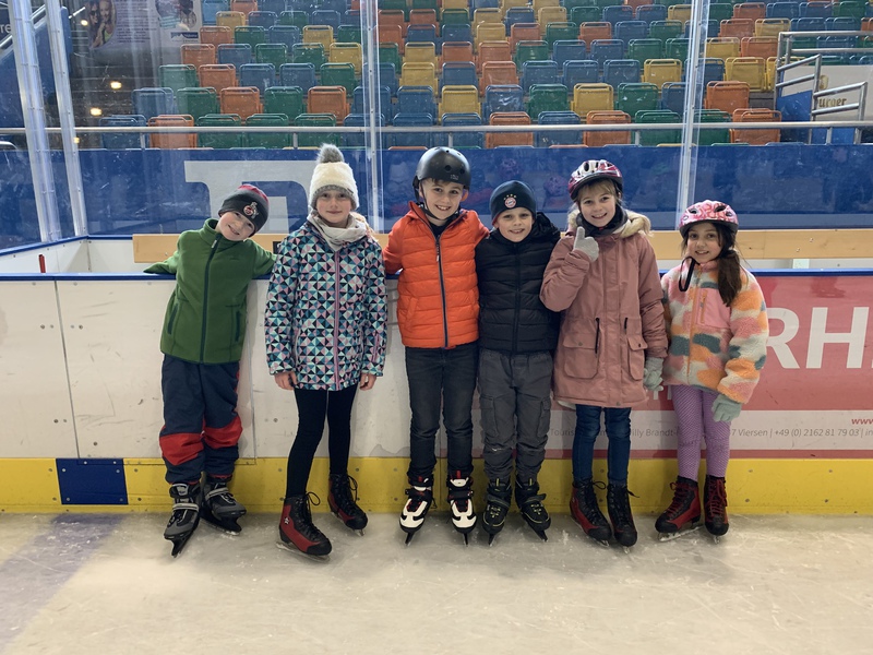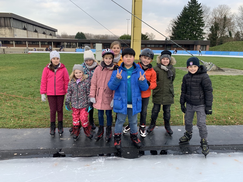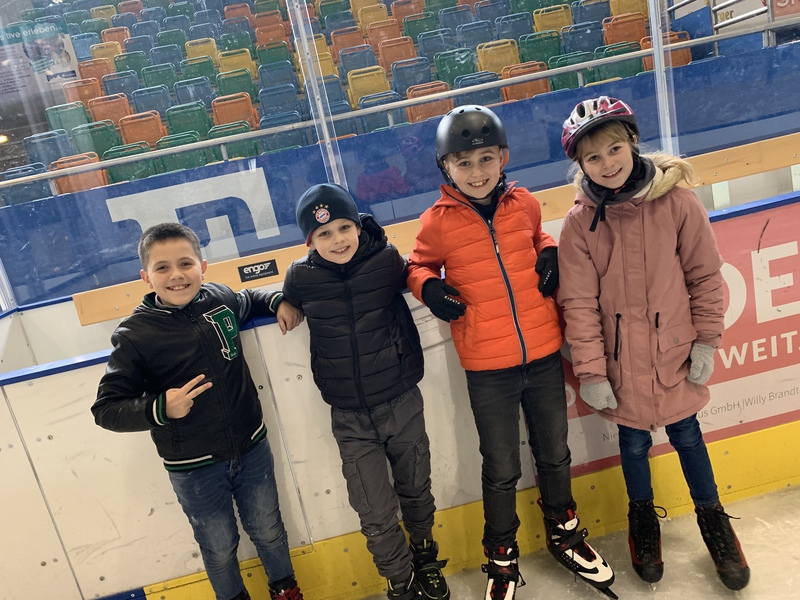 Fast die ganze Klasse ist zum Schlittschuhfahren nach Grefrath gekommen. Wir haben eben noch gewartet und dann sind wir reingegangen. Wir haben uns noch Ausleih-Schlittschuhe geholt und haben sie angezogen. Dann sind alle gemeinsam aufs Eis gegangen. Die meisten hatten es schwer! Es hat aber allen Kindern aus der 4c riesigen Spaß gemacht. Was ihr wissen sollt und bestimmt auch wollt: es gibt insgesamt 3 Bahnen. Die größte ist draußen, die nennt man Außenbahn. Aber in der Außenbahn ist die kleinste Bahn, die Innenbahn. Drinnen gibt es noch eine größere Innenbahn. Da waren wir zuerst. Aber wenn das Eis frisch drauf kommt ist, ist es sehr rutschig. Es dauert erst wieder etwas, bis es besser geht. Am besten solltet ihr einen Helm tragen, wenn ihr Schlittschuhlaufen geht! Als Snack gibt es auch Pommes und noch andere leckere Sachen. Und die Schlittschuhe sollte man lieber eine Nummer größer holen. Wir können euch Schlittschuhfahren in Grefrath nur empfehlen!