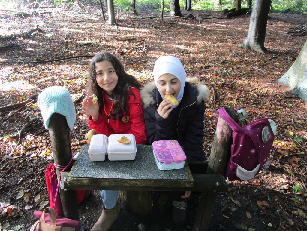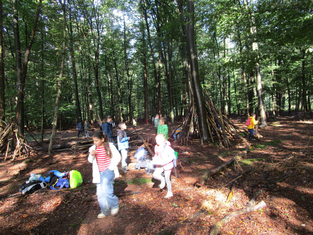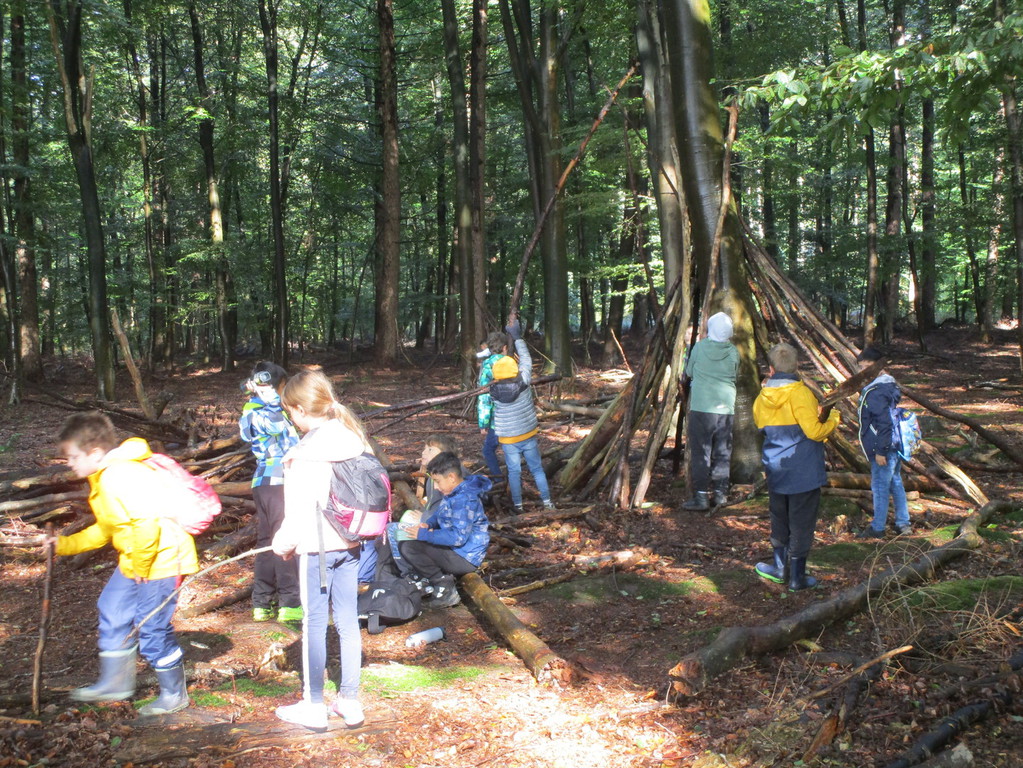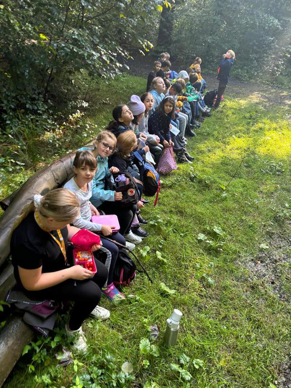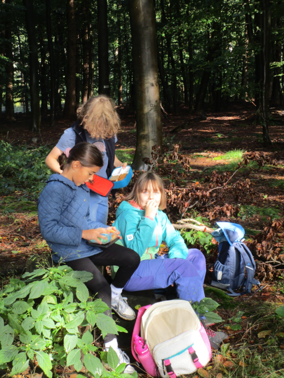 Nach ein paar Stunden machten wir eine Pause, in der wir essen und spielen durften. Manche Kinder bauten Tipis, und es gab sogar ein paar kleine Streiche mit Stöcken – nichts Ernstes. Leider gab es aber auch einen Vorfall: Ein Kind aus der 4b hat einen Stock in ein Erdwespennest gesteckt, und sechs Kinder wurden gestochen. Danach waren alle sehr vorsichtig.
