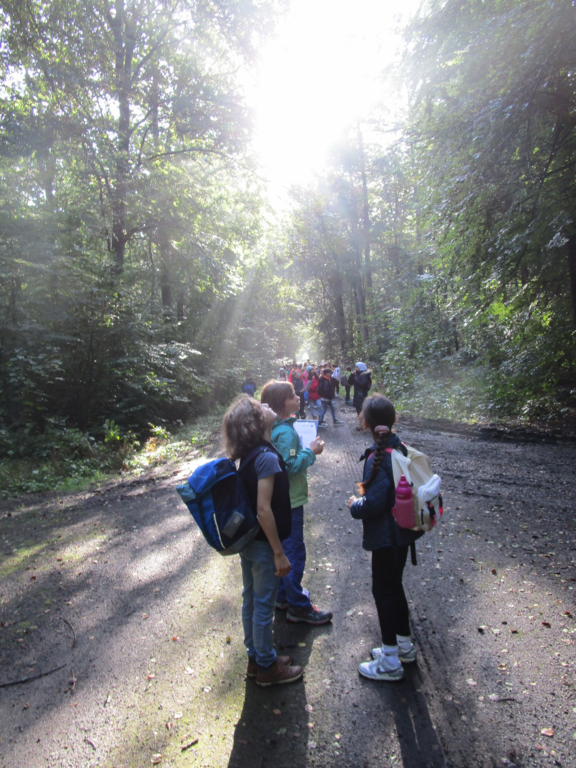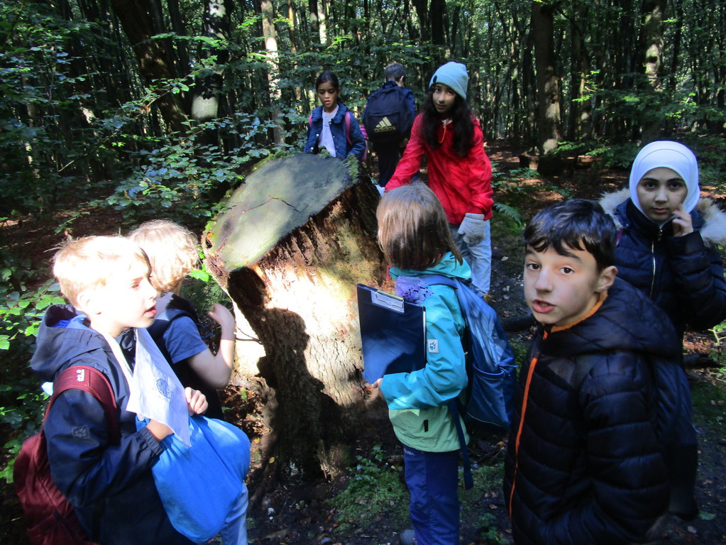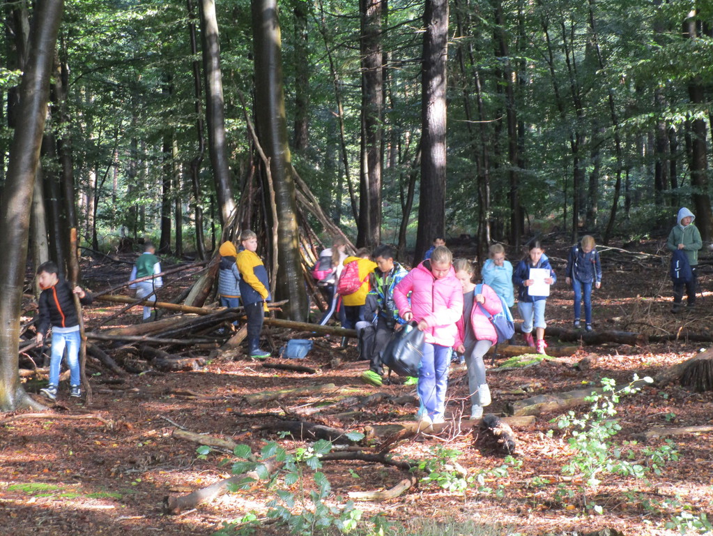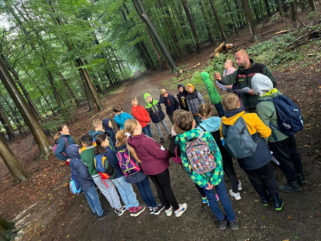 In Gruppen sind wir losgezogen und haben fleißig gerätselt und geschrieben. Viele Aufgaben handelten von Baumarten, und manche davon waren richtig knifflig – besonders Aufgabe 6 und 18! Zwischendurch haben wir auch viele spannende Dinge entdeckt. Einige Kinder sahen Nacktschnecken, andere liefen durch Schlamm, und ein paar von uns fanden sogar einen alten Steinbunker, der aber zugeschüttet war. Das war sehr aufregend!